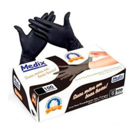 LUVA NITRILICA PRETA M MEDIX 100UND