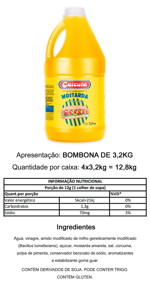 CALCUTÁ CX C/4BO MOSTARDA CALCUTÁ 3,2KG- UN BO- PESAVEL 0-PESO -MULT 1 HTTPS://WWW.ALIMENTOSWILSON.COM.BR/