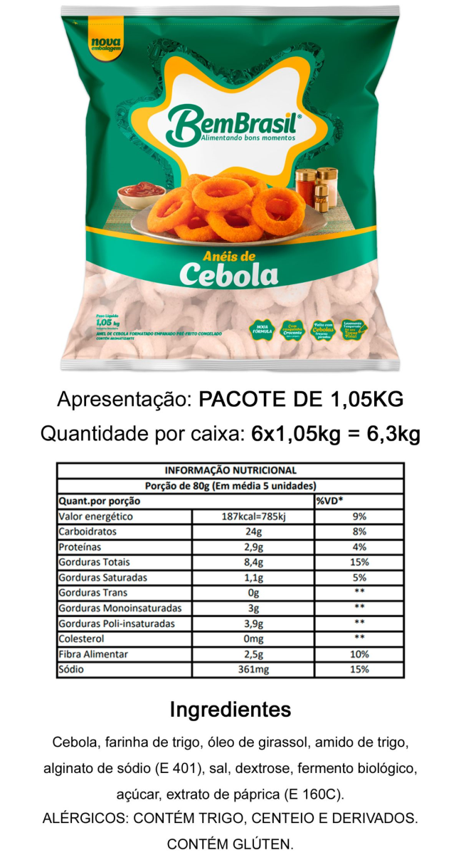 BEM BRASIL CX 6,3KG HTTPS://WWW.BEMBRASIL.IND.BR/PRODUTOS/ANEIS-DE-CEBOLA-105KG/