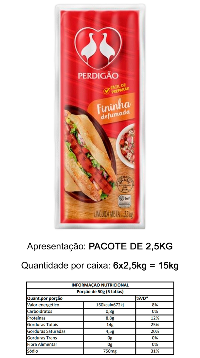 CALABRESA FININHA (LING MISTA DEFUMADA) RESF PERDIGÃO 2,5KG (CX15KG)