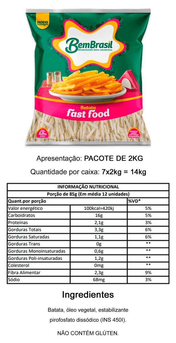 BATATA 7MM FAST FOOD BEM BRASIL 2KG 14KG