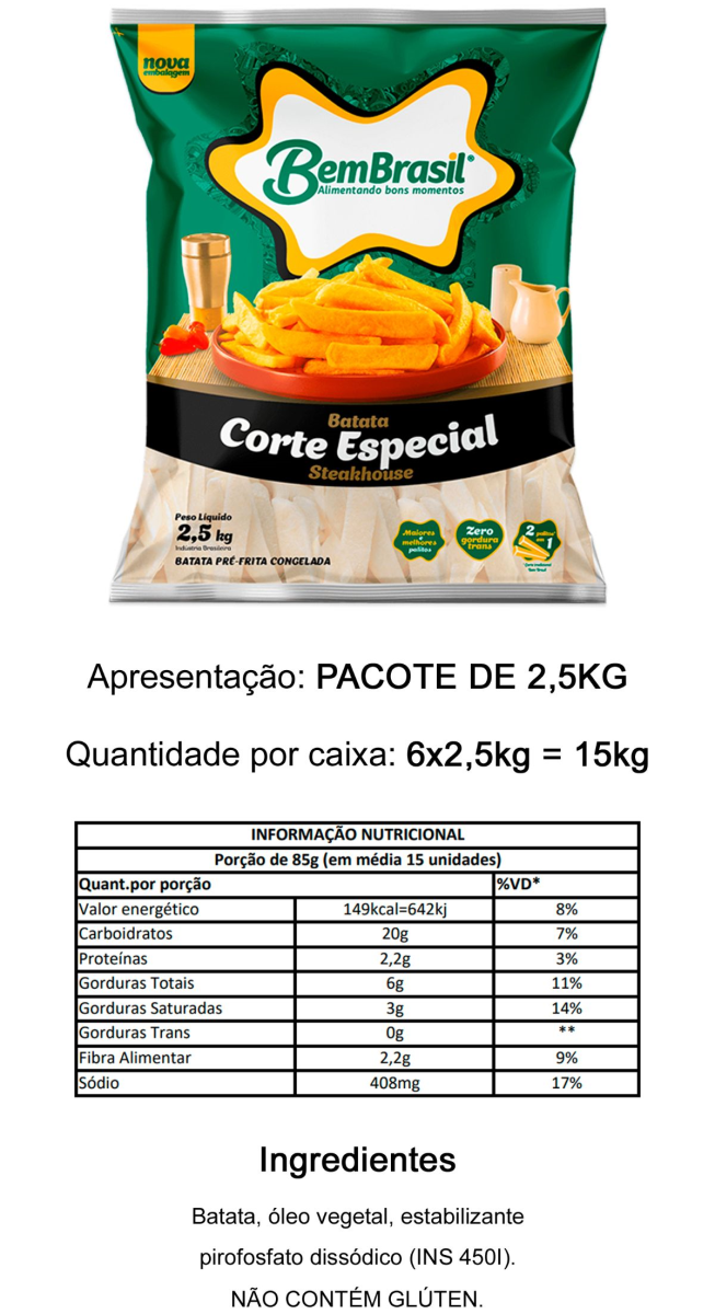 BATATA 9X18 CORTE ESPECIAL STEAKHOUSE BEM BRASIL 2,5KG
