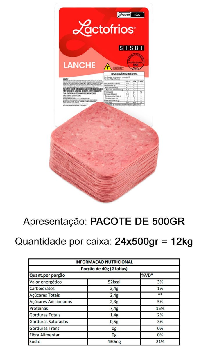APRESUNTADO LANCHE FAT (QUADRADO) LACTOFRIOS PCT 500GR
