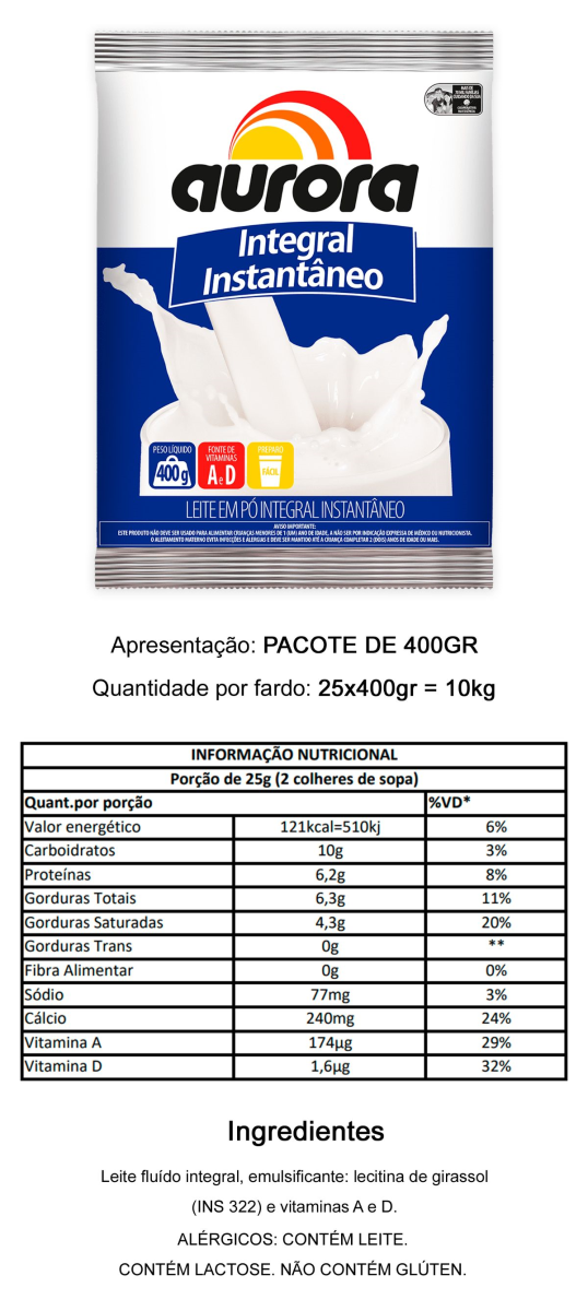 LEITE FLUIDO INTEGRAL, VITAMINAS A E D, EMULSIFICANTE: LECITINA DE SOJA (INS 322). -----