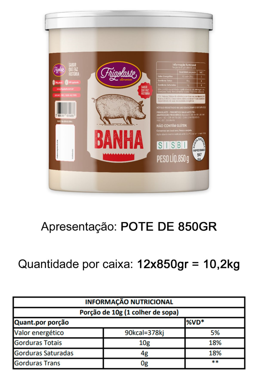 HTTPS://FRIGOLASTE.COM.BR/PRODUTOS ALIBEM CX C/12 POTES = 10,8KG BANHA SUINA REFINADA