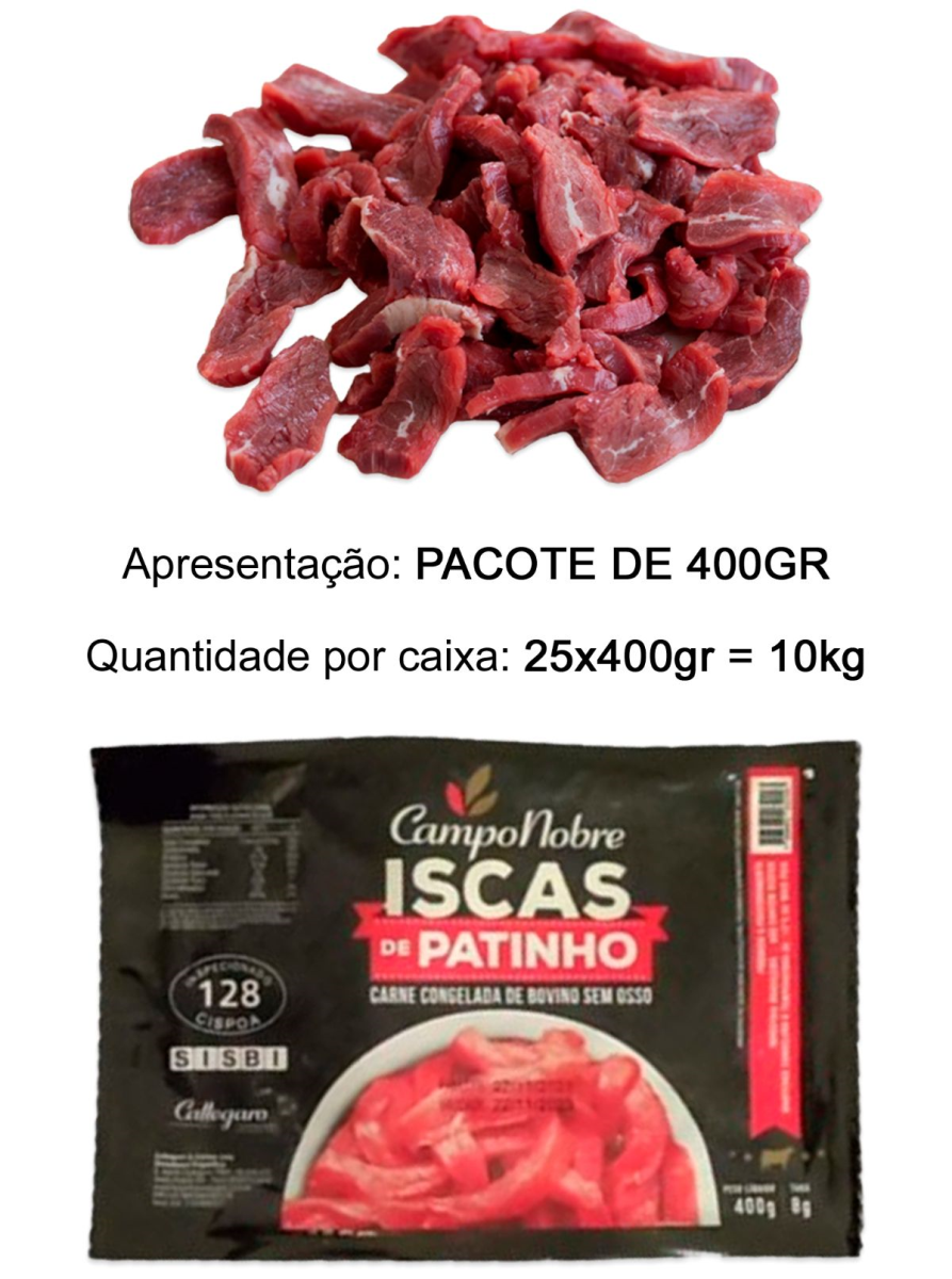 PATINHO EM ISCAS CAMPO NOBRE EM PCT DE 400GRGR CX COM 25 UN HTTP://WWW.FRIGORIFICOCALLEGARO.COM.BR/