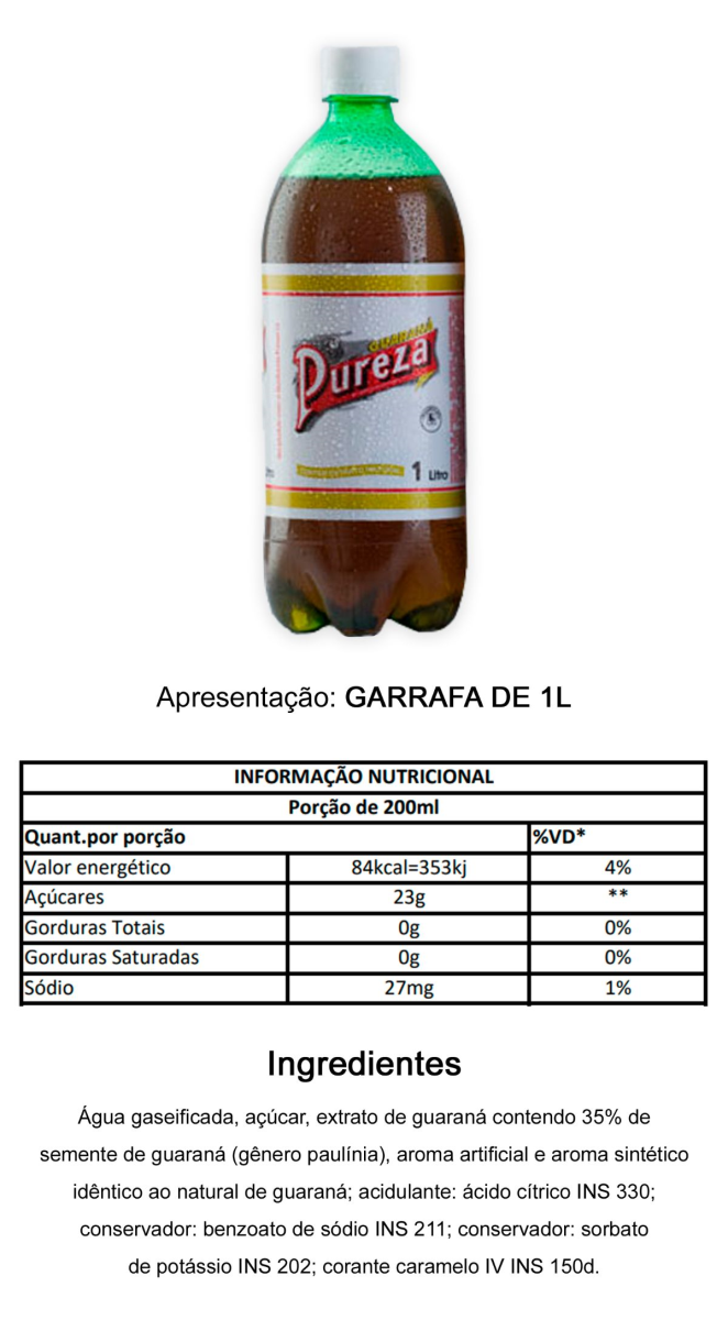 REFRIGERANTE GUARANÁ PUREZA PET 1L