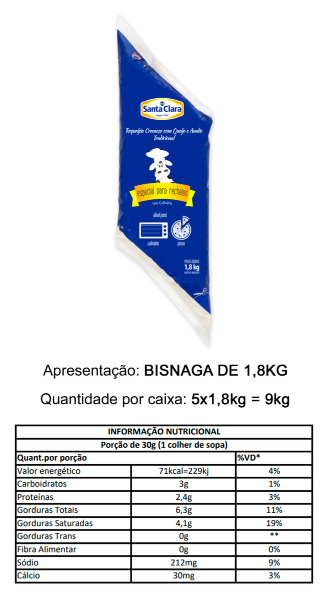 REQUEIJÃO BIS SANTA CLARA 1,8KG (6% DE AMIDO)