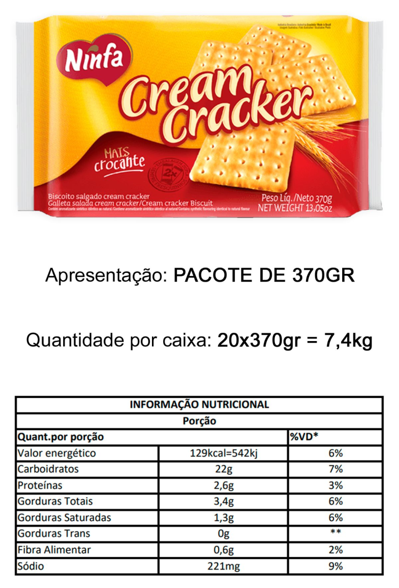 BISCOITO NINFA CREAM CRACKER 350G