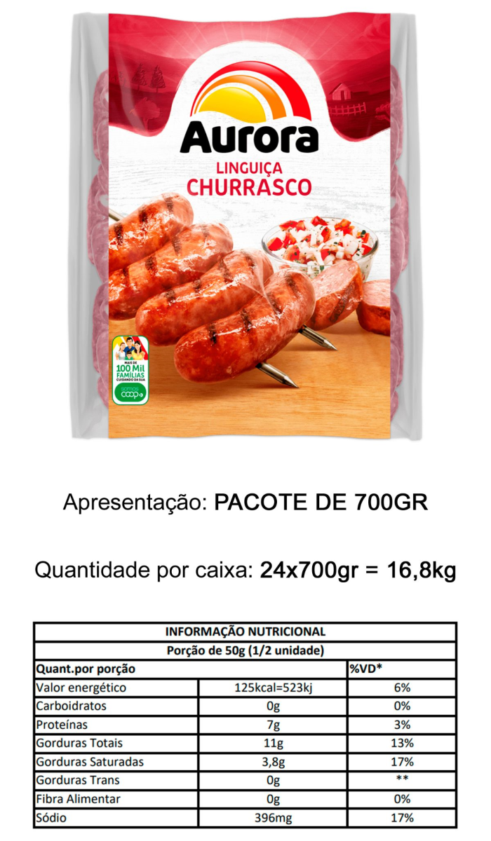LINGUIÇA DE CARNE SUINA (CHURRASCO) CONG AURORA PCT 700GR