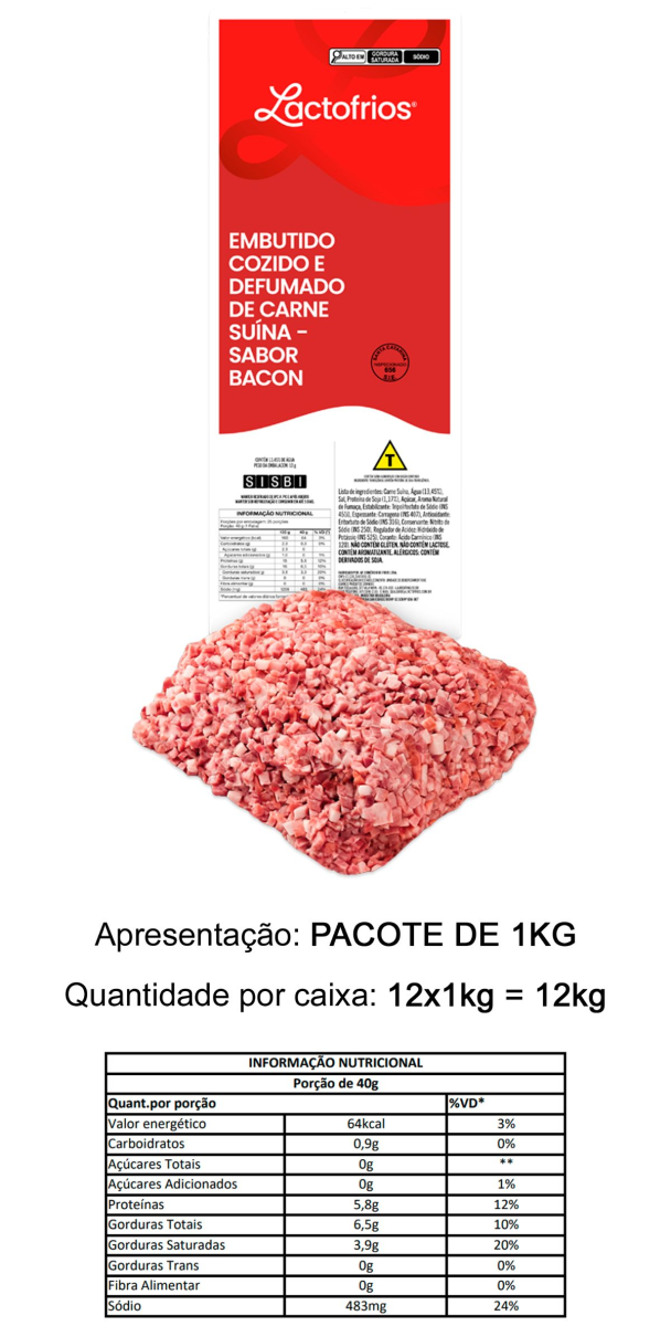 BACON CUBOS (EMBUTIDO COZIDO E DEFUMADO) LACTOFRIOS PCT 1KG
