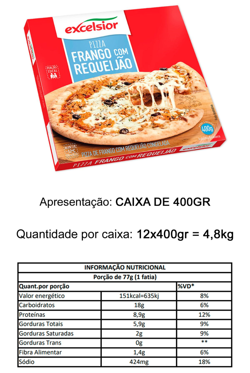 PIZZA FRANGO C/ REQUEIJÃO EXCELSIOR CONG 400GR