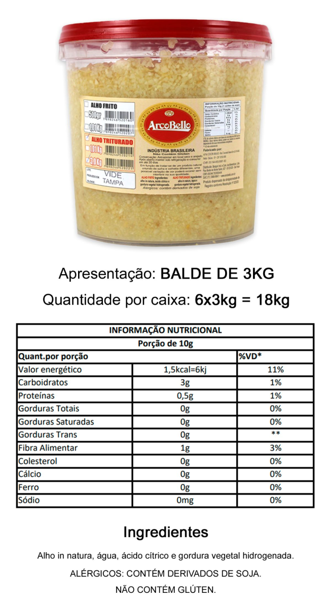 ALHO TRITURADO S/SAL ARCOBELLO 3KG
