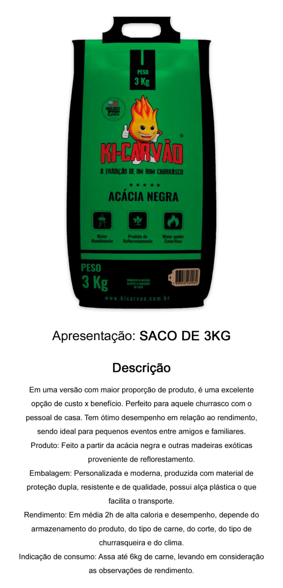 CARVÃO KI-CARVÃO (ACACIA NEGRA) 3KG