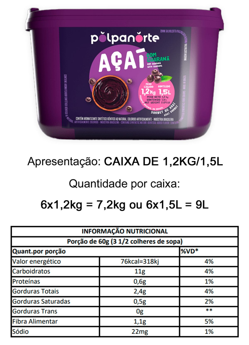AÇAI 1,5LT MIX TRADICIONAL POLPANORTE POTE CONGELADO
