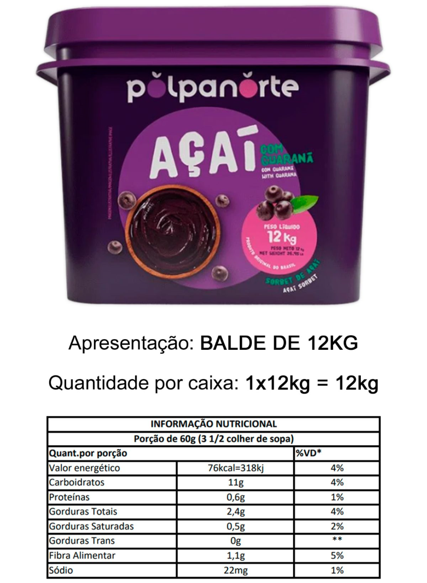 AÇAI 12KG BALDE MIX TRADICIONAL POLPANORTE CONGELADO