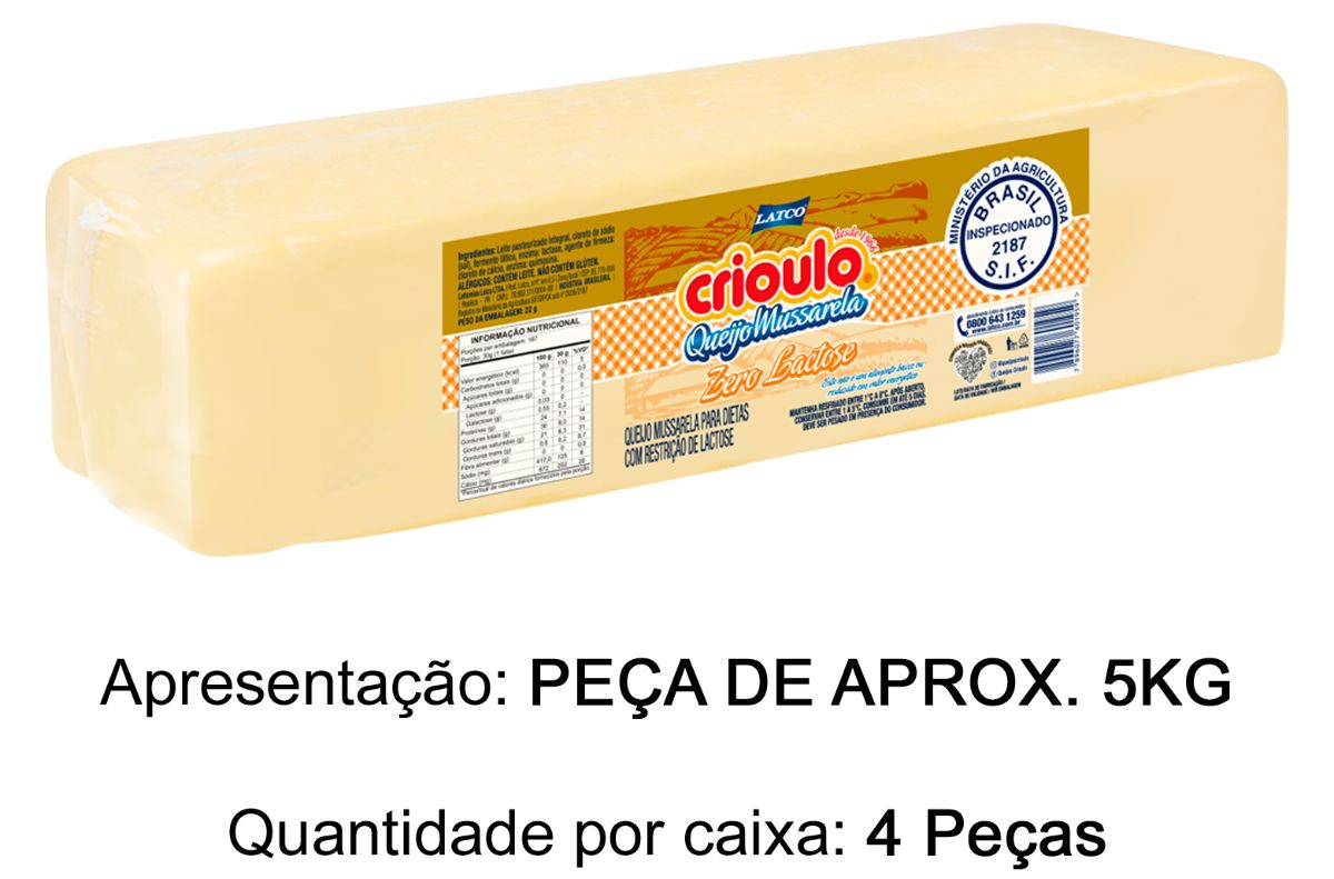 QUEIJO MUSSARELA INTEIRO ZERO LACTOSE CRIOULO 5KG