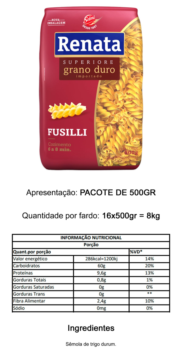 MACARRÃO FUSILLI GRANO DURO RENATA 500G