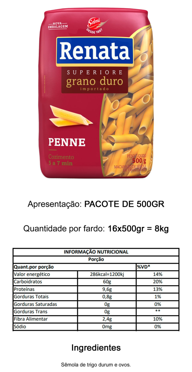 MACARRÃO PENNE GRANO DURO RENATA 500G