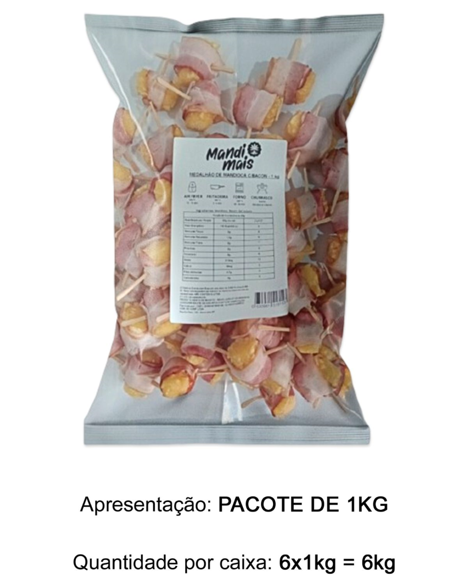 MANDIOCA C/ BACON MANDIMAIS 1KG (ESPETINHO MEDALHÃO)