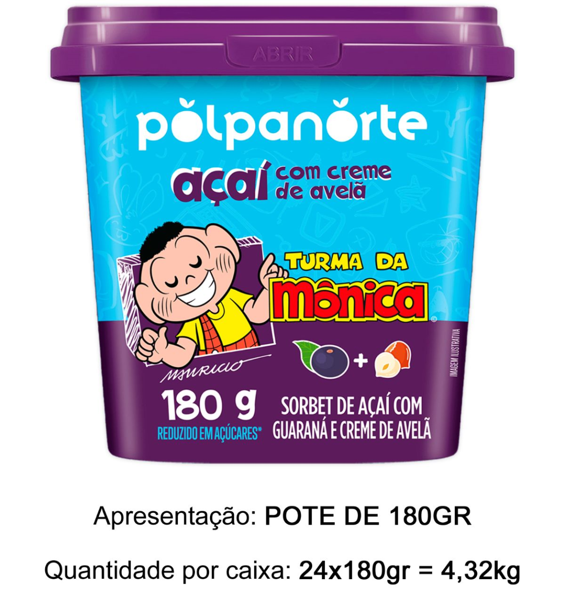 AÇAI TURMA DA MONICA CASCÃO 180G MIX CREME DE AVELA POLPANORTE