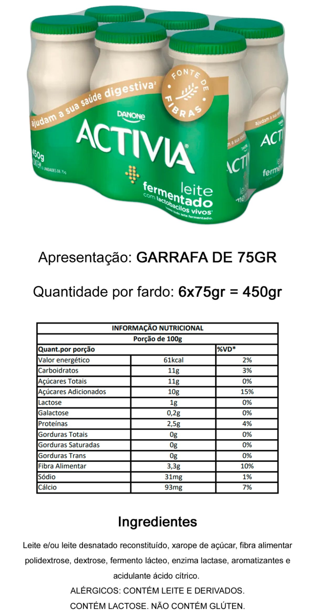 LEITE FERMENTADO ACTIVIA BAUNILHA 450G PAC C 6 194999