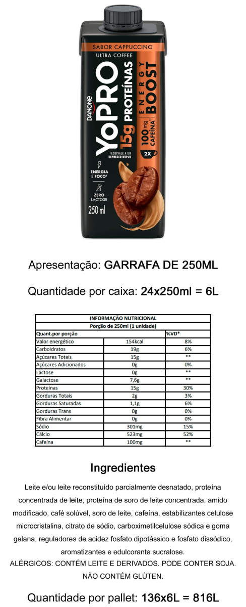 YOPRO UHT 15G PROT CAPPUCCINO ENERGT BOOST 250ML ZERO LAC 195420