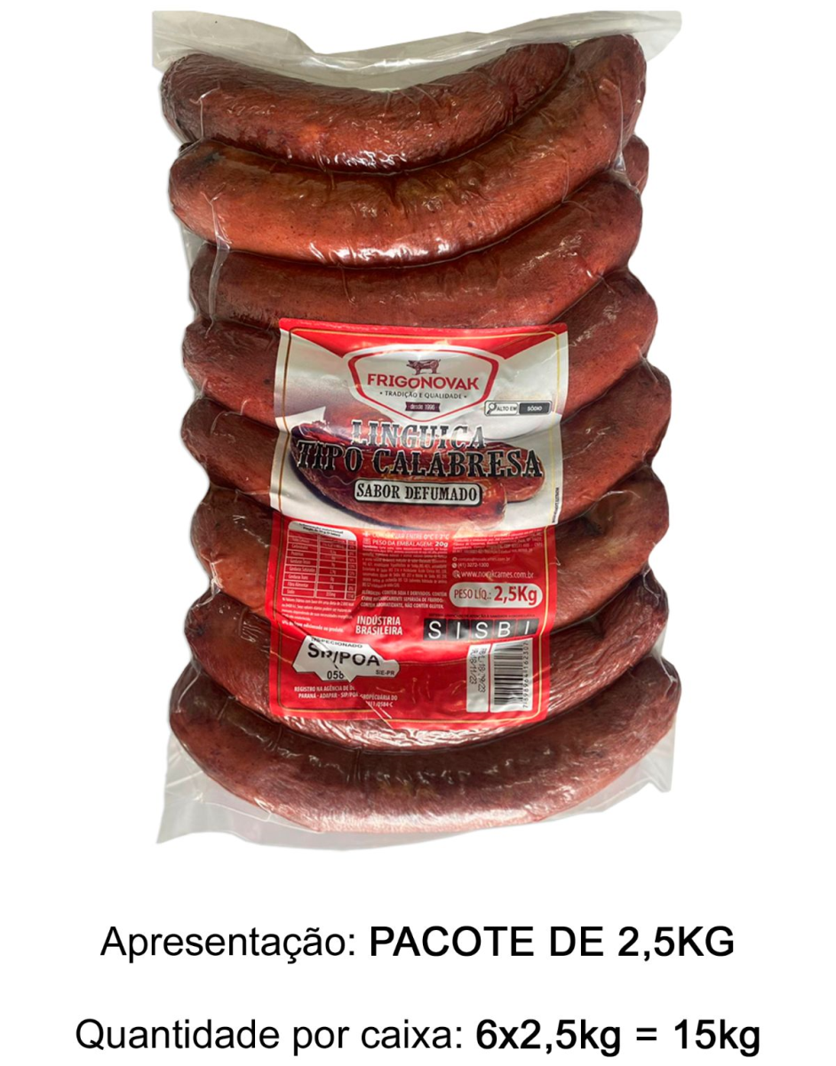 LINGUIÇA TIPO CALABRESA É OBTIDA DE CARNE SUÍNA E DE FRANGO. COM PADRÕES DA