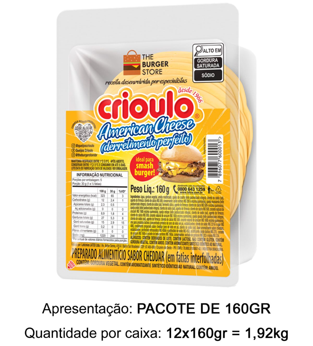 QUEIJO CHEDDAR FATIADO CRIOULO 160G (AMERICAN CHEESE)