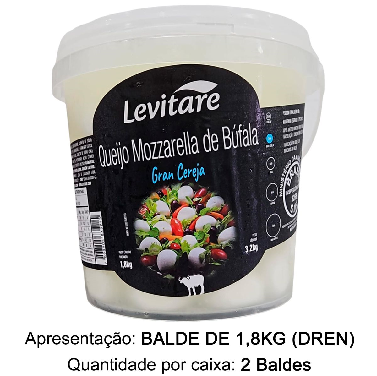 QUEIJO BUFALA GRAN CEREJA BALDE 1,8KG LEVITARE