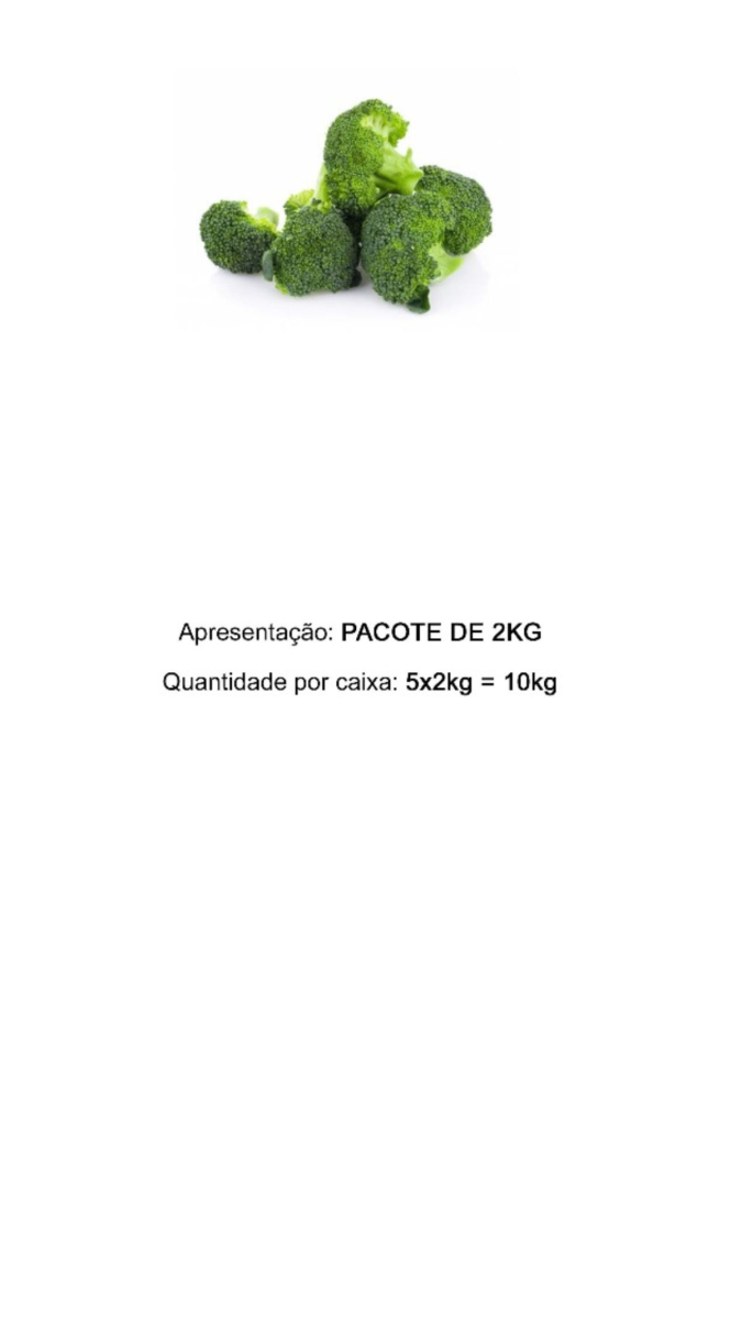 BROCOLIS CONGELADO GRADE A, SELECIONADO, 100% NATURAL E SEM ADITIVOS CONGELAMENTO IQF PCT 2KG CX 10 KG PRODUTO CHINÊS, NÃO É PRÉ COZIDO, IMPORTADO PELA SOS.