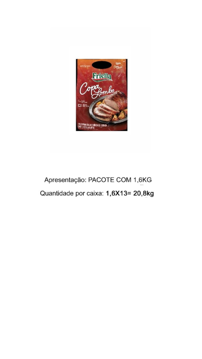 SOBREPALETA SUINA FESTA (COPA LOMBO) S/O S/P TEMP CONG FRIELLA PÇ +/- 1,6KG