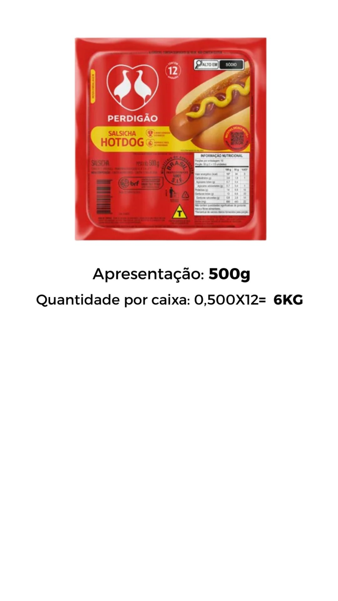 SALSICHA HOT DOG RESF PERDIGÃO 500GR (CX12)
