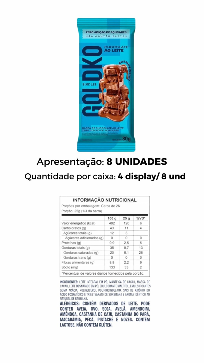 CHOCOLATE BARRA AO LEITE GOLDKO 80G