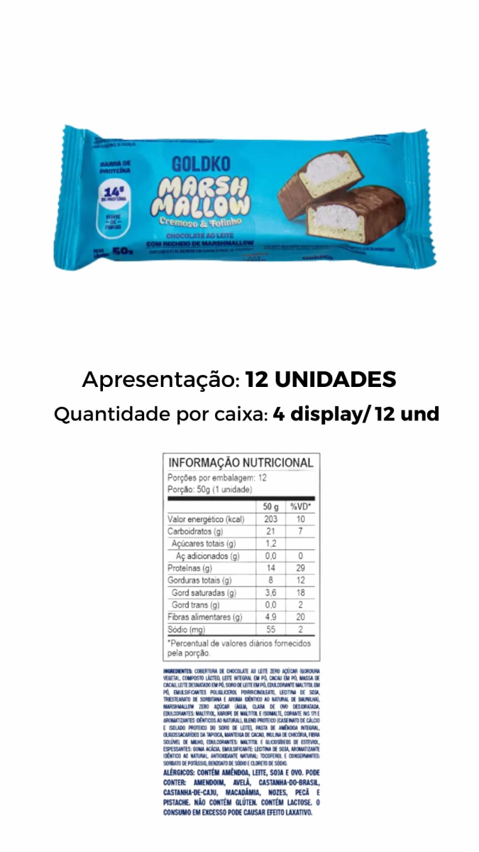 BARRA DE PROTEINA AO LEITE GOLDKO 50G C/MARSHMALLOW