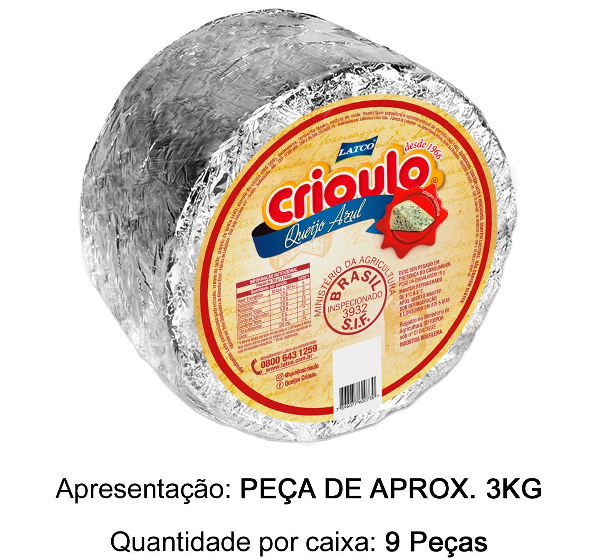 HTTP://LATCO.COM.BR/PRODUTOS-CRIOULO/CRIOULO/#QUEIJO-AZUL 35 DIAS DE CURA. HTTPS://LATCO.COM.BR/ CAIXA COM +/-7KG