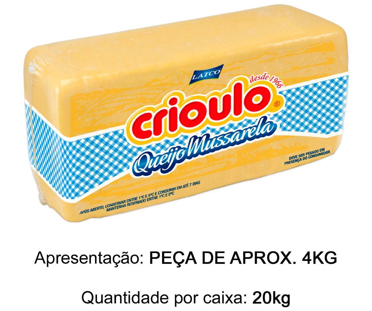 QUEIJO MUSSARELA INTEIRO CRIOULO 4KG CX 20KG