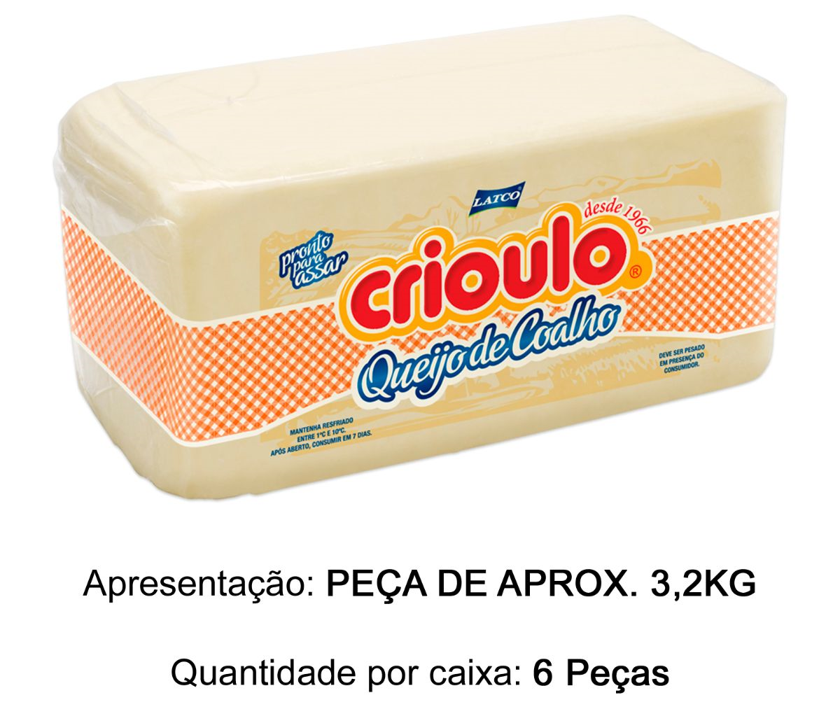 QUEIJO COALHO CRIOULO 3,2KG CX 16KG